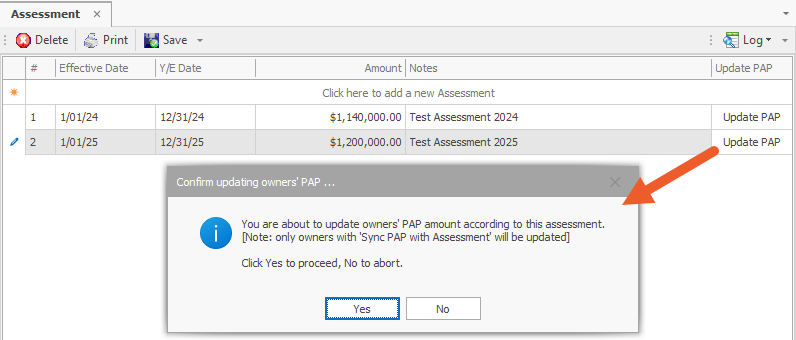Once you click the Yes, it will update all Owner PAPs that have the "Sync with Assessment" enabled.