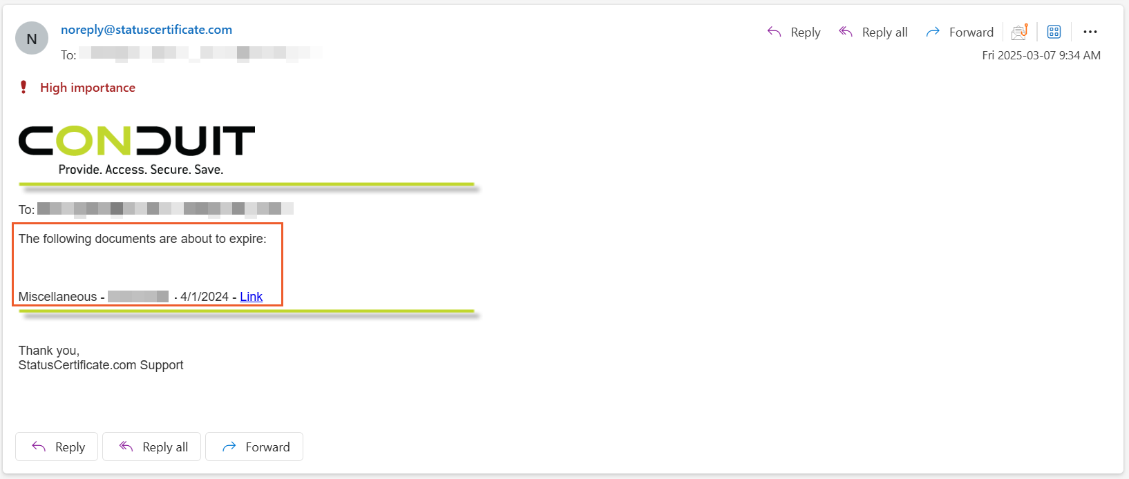 NOTE: You will receive a notification email once the document reaches the notification date you entered. The notification will be set 7 days before Expiry date by default.