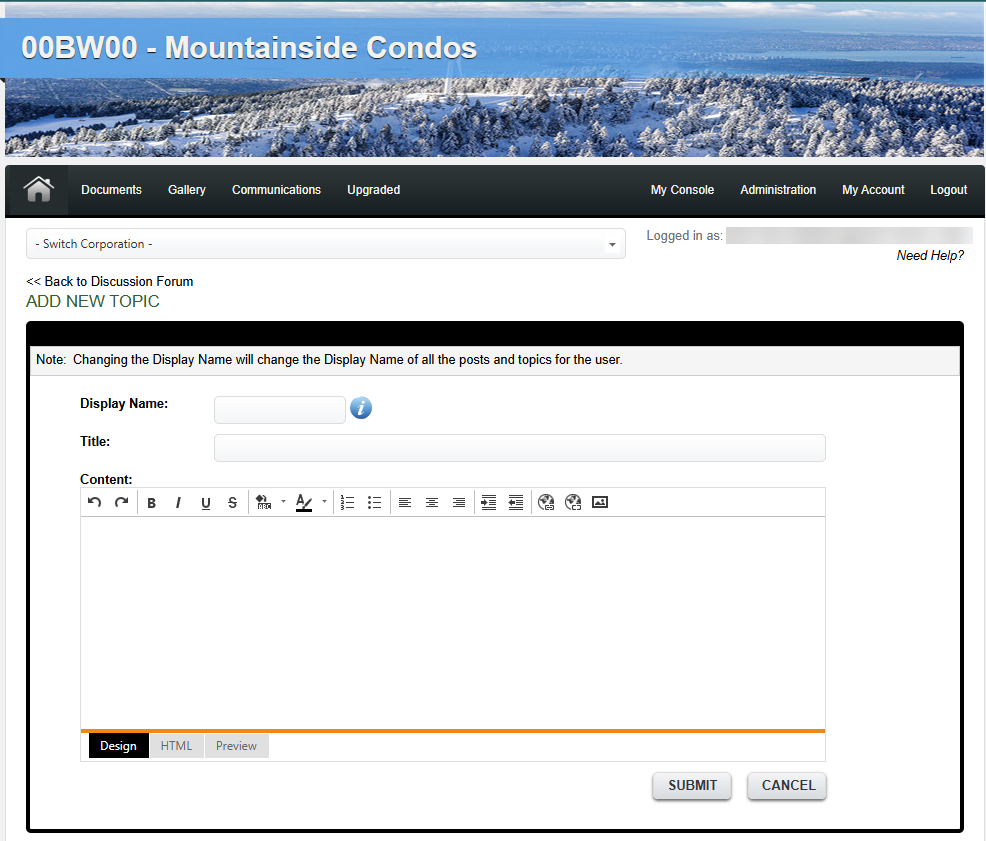 Once the information has been entered, selecting Submit will post the discussion to the forum, where it becomes visible to other community members.